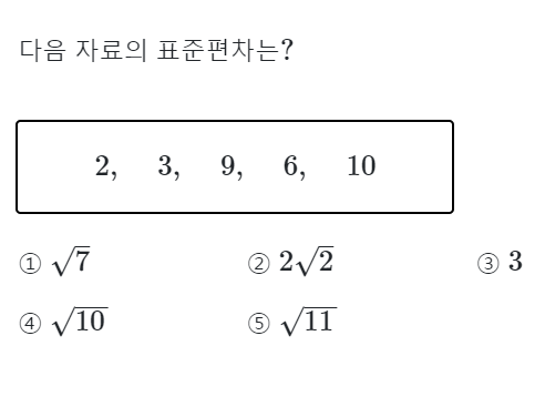 분산을 구하면 표준편차는 쉽게 계산되기 때문에 분산을 구하는 방법만 잘 기억하고 있으면 됩니다.