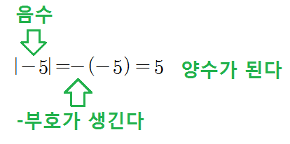 절댓값 기호 안의 수 전체가 음수이면 양수(거리개념)로 만들기 위해 -부호를 하나 더 붙인다(O)