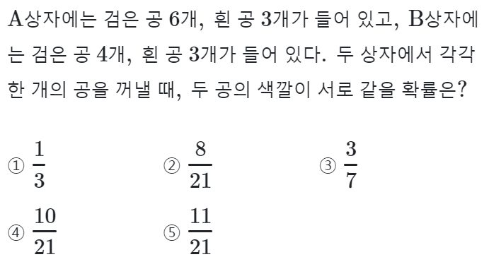 1. A주머니에서 검은공을 꺼내는 확률 × B주머니에서 흰공을 꺼내는 확률