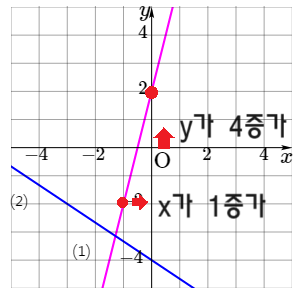 오륵쪽 위를 향하는 직선은 기울기가 양수이고, 오른쪽 아래를 향하는 직선은 기울기가 음수라는 것을 체크하는 것도 필요하겠습니다.