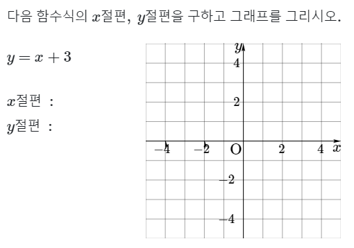 중등 2학년 수학 > 일차함수 > x절편, y절편을 구하고 그래프 그리기 연습문제 프린트 학습지