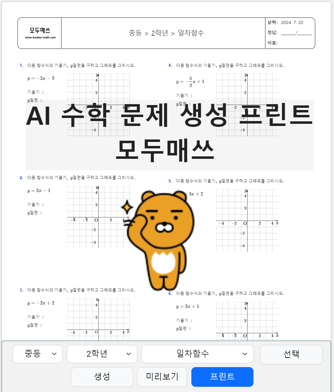 - 프린트 기능: 생성된 문제를 프린트하여 언제 어디서든 학습할 수 있습니다.