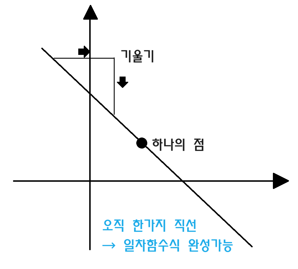 한 점과 기울기가 주어지면 직선은 오직 하나예요.
