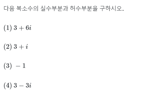 문제를 풀어보면서 실수부분과 허수부분을 구별하는 연습을 해볼게요.