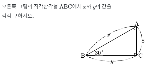[삼각비를 이용하여 변의 길이구하는 연습문제: 모두매쓰에서 생성]