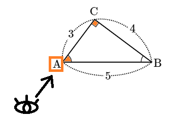 팁을 드리자면, 삼각비의 기준이 되는 각이 있는 꼭짓점에서 직각이 있는 방향으로 바라봐야해요.