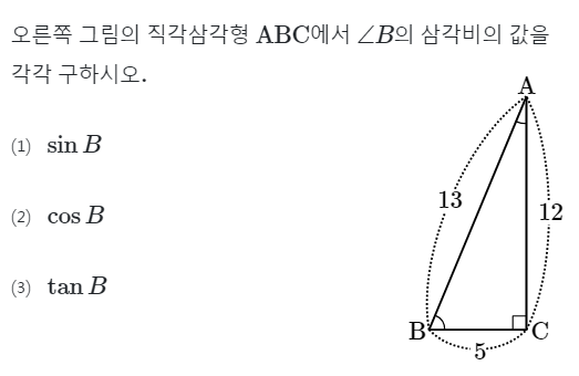 중등 3학년 수학 > 삼각비 > 여러가지 모양의 직각삼각형의 삼각비 구하기 연습문제 프린트 학습지