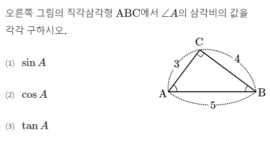 그렇게 한 다음에 본인이 알고 있는 삼각비를 적용해보면 훨씬 수월하게 적용이 됩니다.