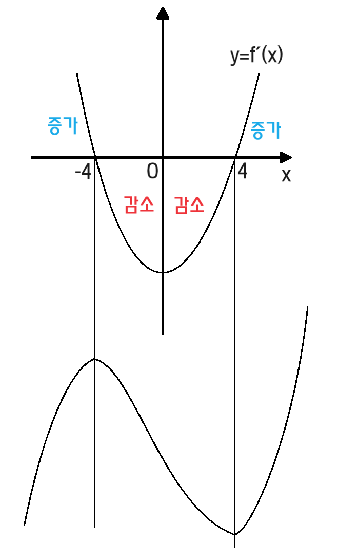 삼차함수 $y=f(x)$의 도함수인 $y=f'(x)$는 이차함수인데요,