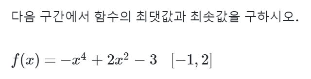 고등 수학II > 도함수의 활용 > 사차함수의 최댓값과 최솟값 구하기 연습문제 프린트 학습지
