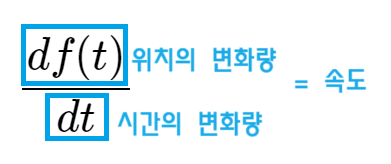 $f(t)\times{\dfrac{d}{dt}}=\dfrac{df(t)}{dt}$ 예요. 여기서 다음 식을 잘 보시면, 아래 식 자체가 속도예요.